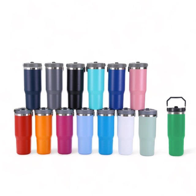 All tumblers have a stainless steel base. Lids are grey. – with the exception of the Kelly Green. Kelly Green comes with a black lid (this is a custom color) but we will have extra grey, black, white, and off-white lids for purchase separately.