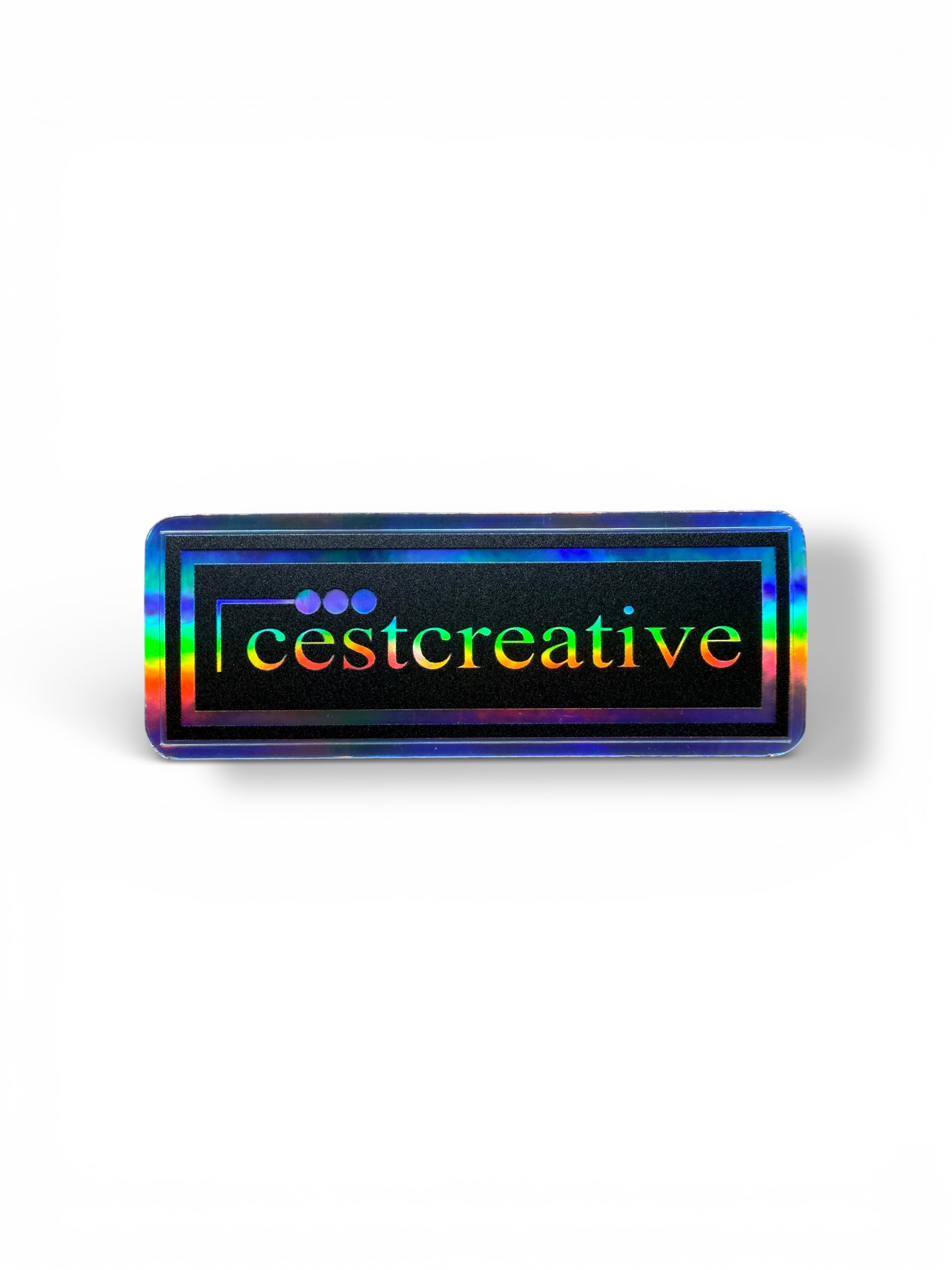 UV Printed on premium HOLOGRAPHIC vinyl.  Considered “permanent” which means the adhesive  will last several years under normal conditions.  The holographic material is a beautiful chrome finish with a spectrum of colors visible from different angles.