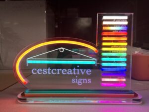 Each sign is created using acrylic, LED lighting, and special tubing. There is no actual neon gas or glass in this product.